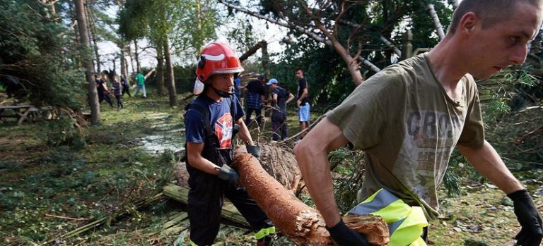 Rytel, 18.08.2017. Strażacy i mieszkańcy usuwają szkody po nawałnicy, PAP/Adam Warżawa Nawałnica, która przeszła nad…
