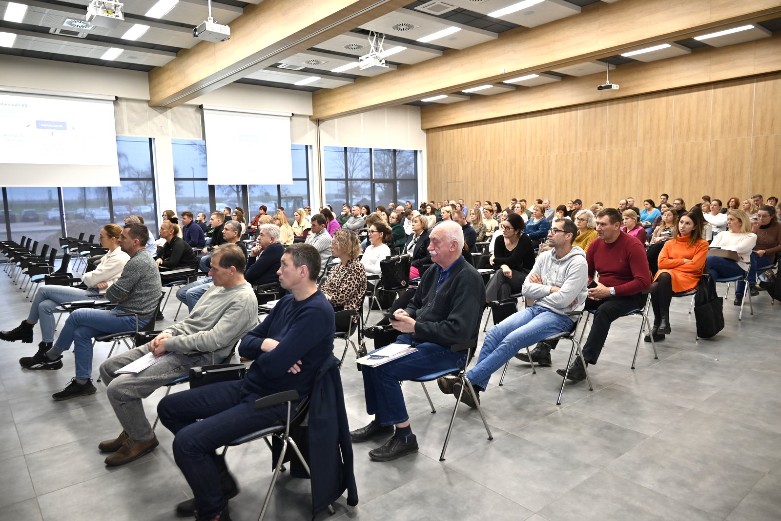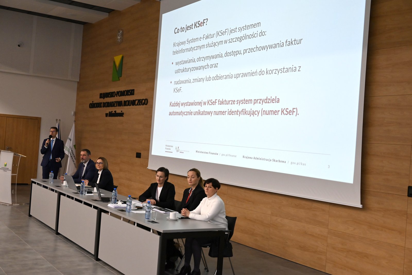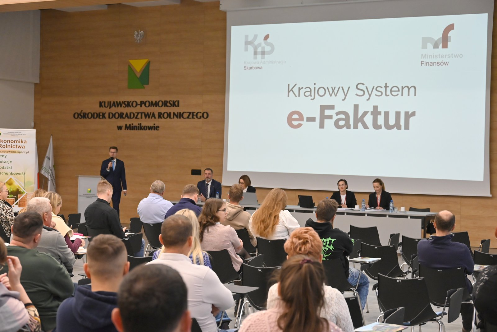 17 listopada 2025 r. w Kujawsko-Pomorskim Ośrodku Doradztwa Rolniczego w Minikowie odbyło się kolejne szkolenie pn. „Krajowy System e-Faktur – nowy obowiązek”. Zostało przeprowadzone we współpracy KPODR w Minikowie z Urzędem Skarbowym w Nakle nad Notecią, który wydelegował wykładowców. Udział wzięło ponad 100 rolników z terenu naszego województwa, a przybyłych gości przywitał Łukasz Urbański – dyrektor KPODR w Minikowie.